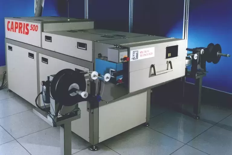 它订购了一台C500。CAPRIS 555(C555)是一种定制的准分子激光打标系统;它是为德国汉堡的空中客车公司开发的,是欧洲的首个客户,紧随其后的是Speyer空中客车公司。C555是首款基于旋转字符盘的线缆打标设备,每个激光脉冲标记一个字符。